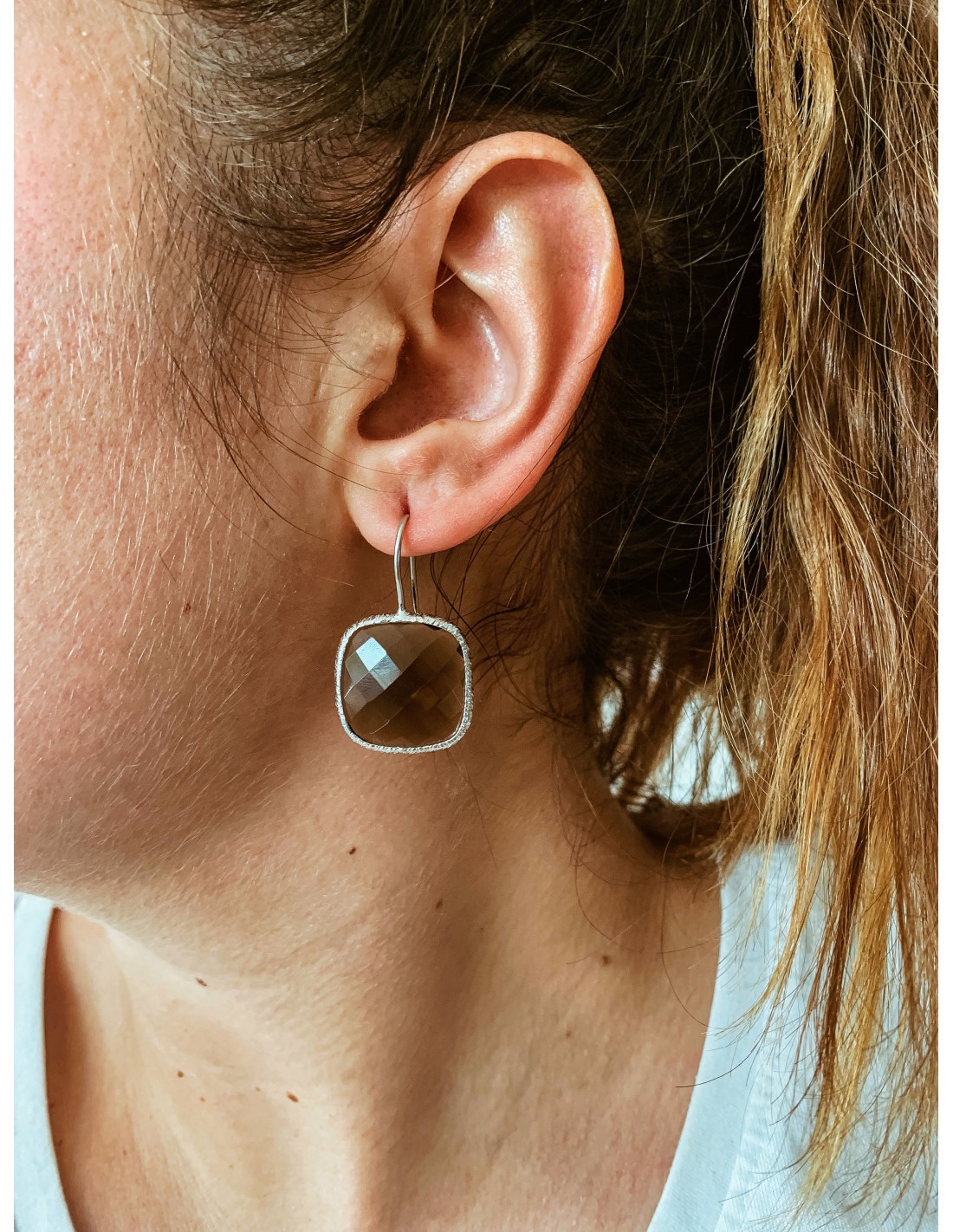 copy of Orecchini con Pietra Fumè Tonda e Montatura Incisa