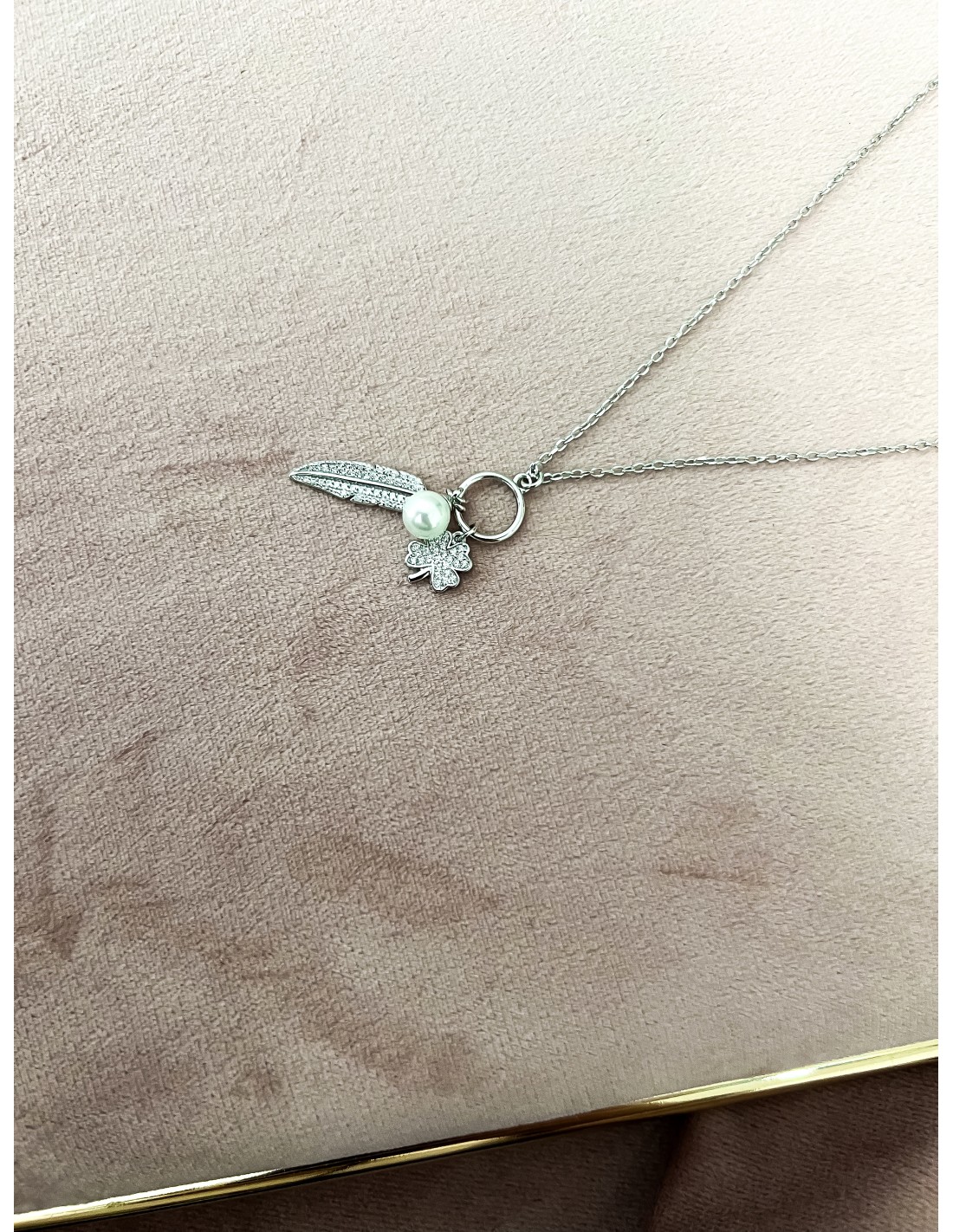 Pearl and Four-leaf Feather Necklace