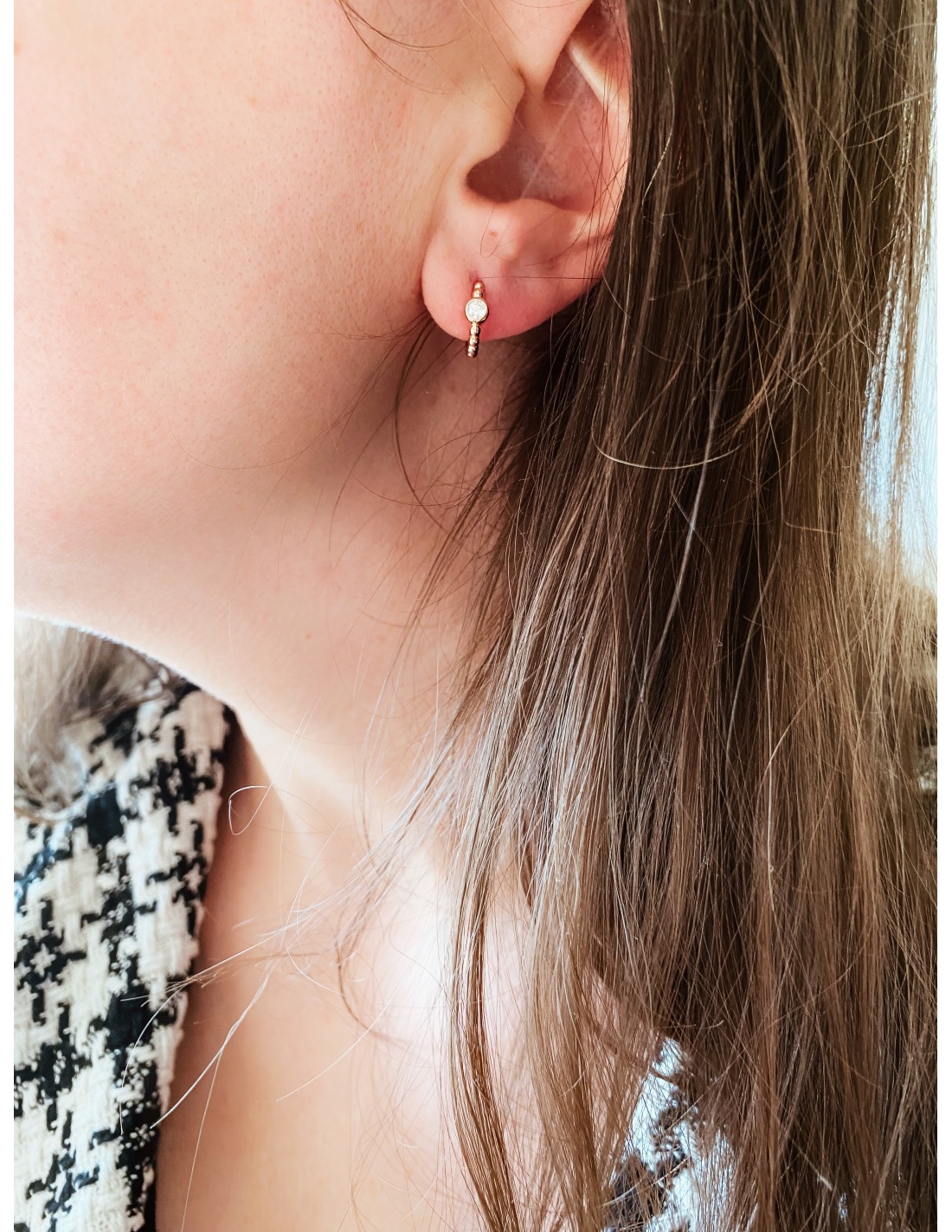 1 Coppia di Monorecchini a cattino con Palline e Zircone Bianco (Argento Rosa 24K, Zircone Bianco) Diametro 1 cm, Peso 1 g