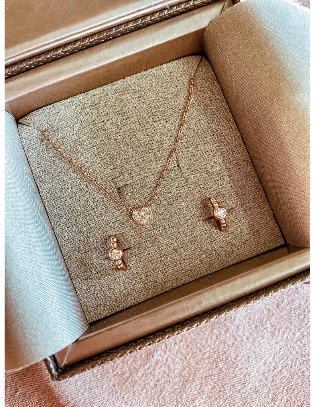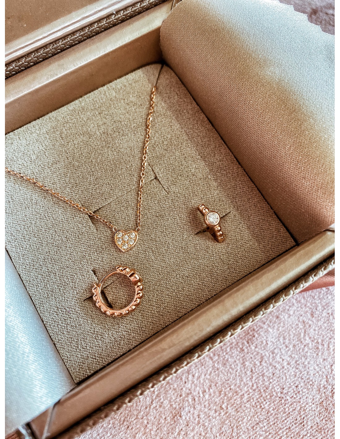 1 Collana Strangolino Mini con Zirconi a forma di Cuore (Argento Rosa 24K, Zirconi Bianchi) Lunghezza 36 cm + 2 cm, Peso 1 g