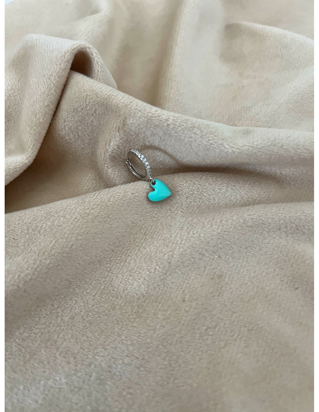 Monorecchino Zirconi e Cuore Verde Acqua